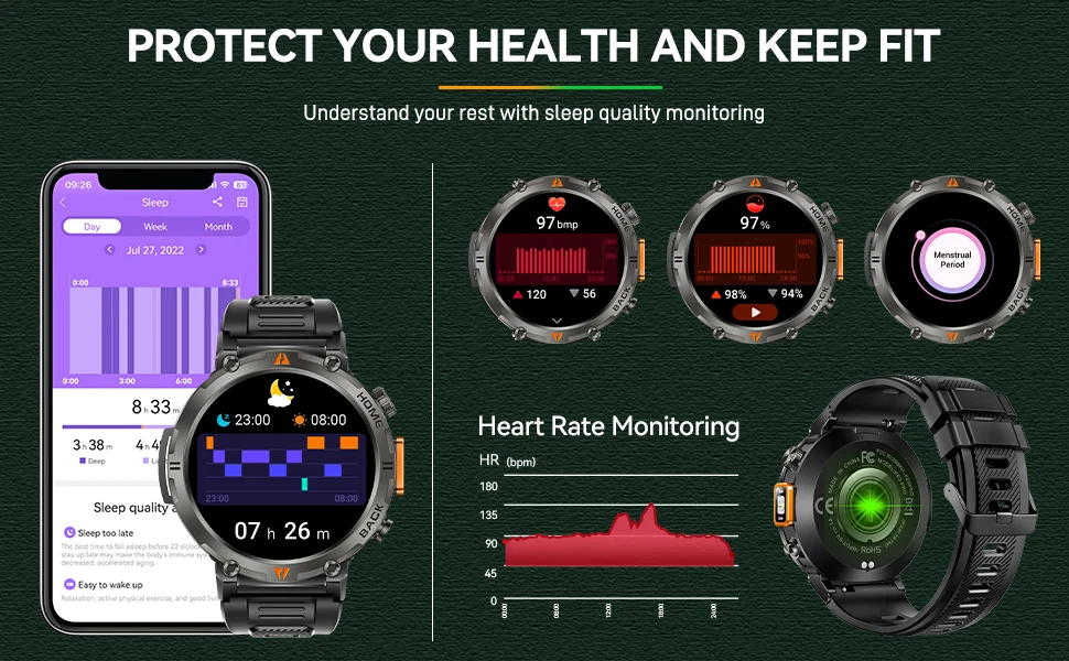 ¿Buscas un reloj que aguante tu ritmo, ya sea en la oficina o en la montaña? El EIGIIS KE3 Pro no es un smartwatch convencional; es una herramienta de supervivencia y rendimiento diseñada para el hombre moderno que no se detiene ante nada. Con su construcción de grado militar y funciones avanzadas, este reloj redefine lo que significa estar conectado.