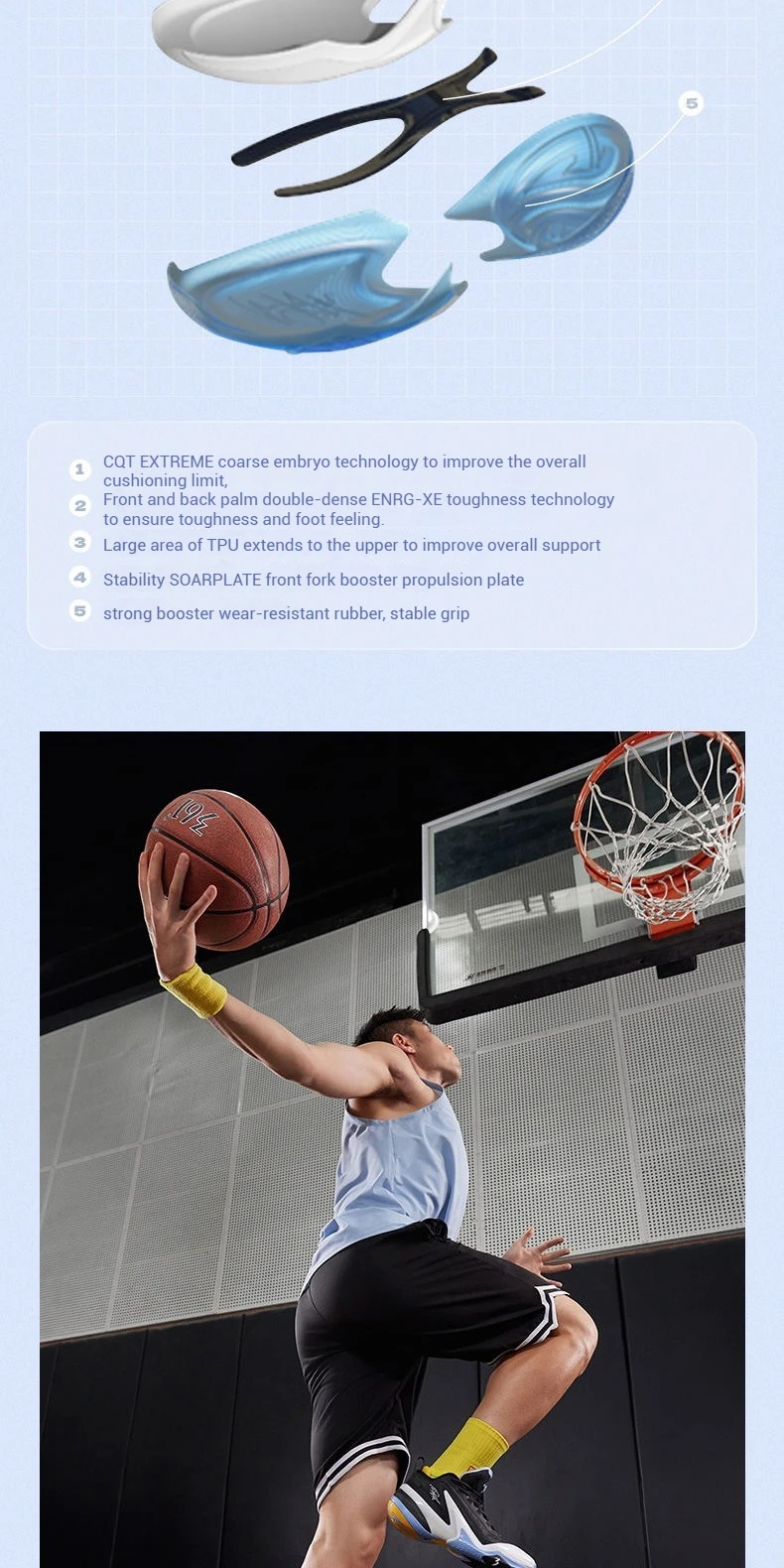 Lugares de Aplicación: Diseñados como tenis de baloncesto profesionales, son totalmente aptos para suelo de hormigón, canchas de cemento, suelo de madera y suelo de PVC (pistas cubiertas).
